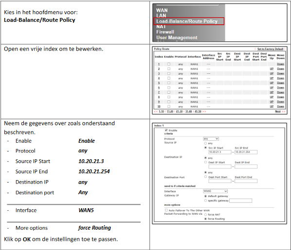 Na het aanmaken van deze instellingen kan er op LAN poort 3-6 apparatuur worden aangesloten dat middels DHCP