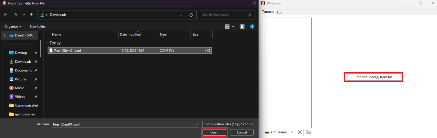 Importeer de config in de Wireguard client